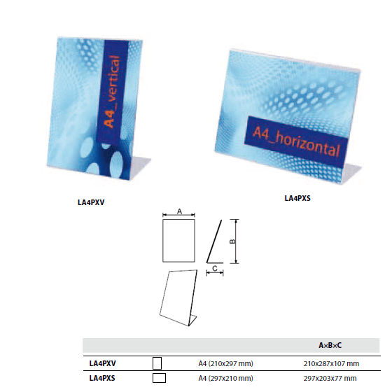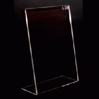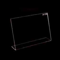 Klasický plexistojanček v tvare L. Dostupný v horizontálnom aj vertikálnom formáte A4. Vyrobený z priehľadného akrylu.