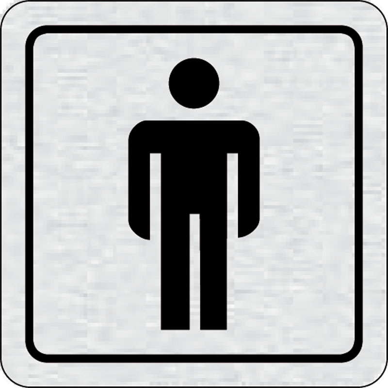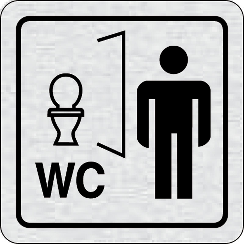 piktogram WC muži, rozmer 80x80 mm - piktogram je vyrobený technológiou tepelne chemickej tlače na hliníkovú tabuľku- vďaka špeciálnemu chemickému zloženiu je výsledná tlač odolná proti poškrabaniu- piktogram s rozmerom 80x80 mm je zozadu vybavený samolep