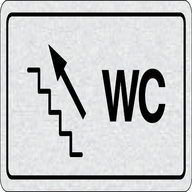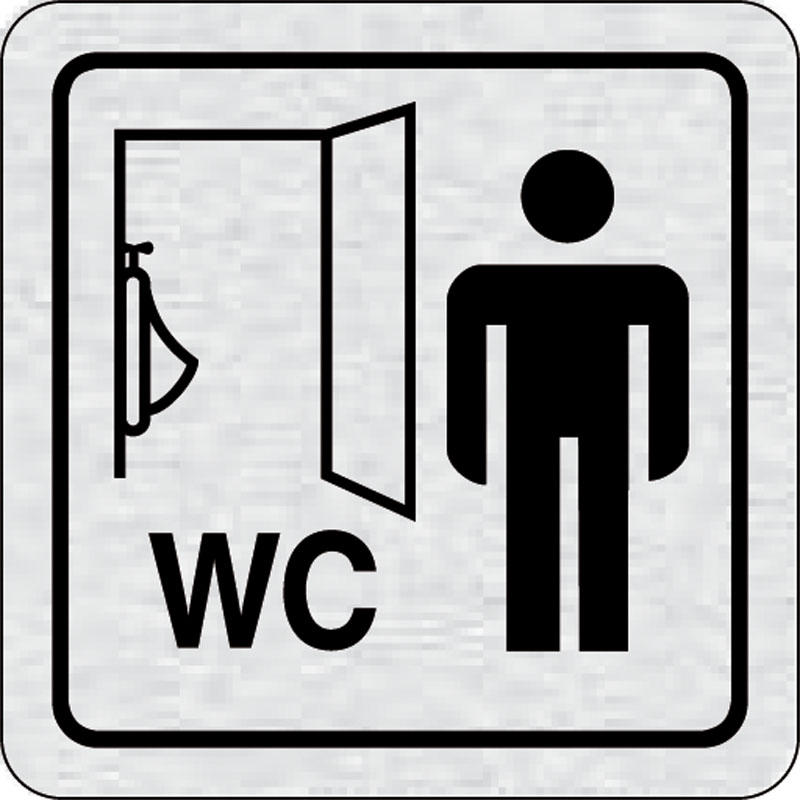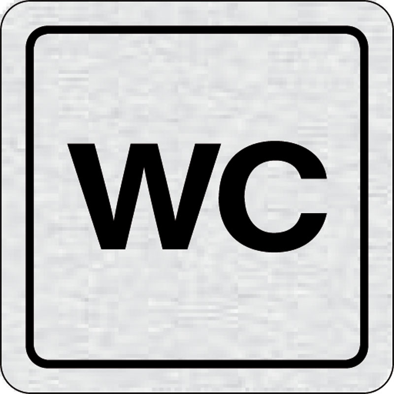piktogram WC, rozmer 80x80 mm - piktogram je vyrobený technológiou tepelne chemickej tlače na hliníkovú tabuľku- vďaka špeciálnemu chemickému zloženiu je výsledná tlač odolná proti poškrabaniu- piktogram s rozmerom 80x80 mm je zozadu vybavený samolepiacou