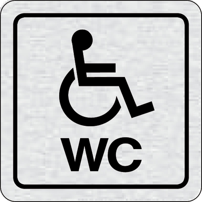 piktogram WC invalidi, rozmer 80x80x mm - piktogram je vyrobený technológiou tepelne chemickej tlače na hliníkovú tabuľku- vďaka špeciálnemu chemickému zloženiu je výsledná tlač odolná proti poškrabaniu- piktogram s rozmerom 80x80 mm je zozadu vybavený sa