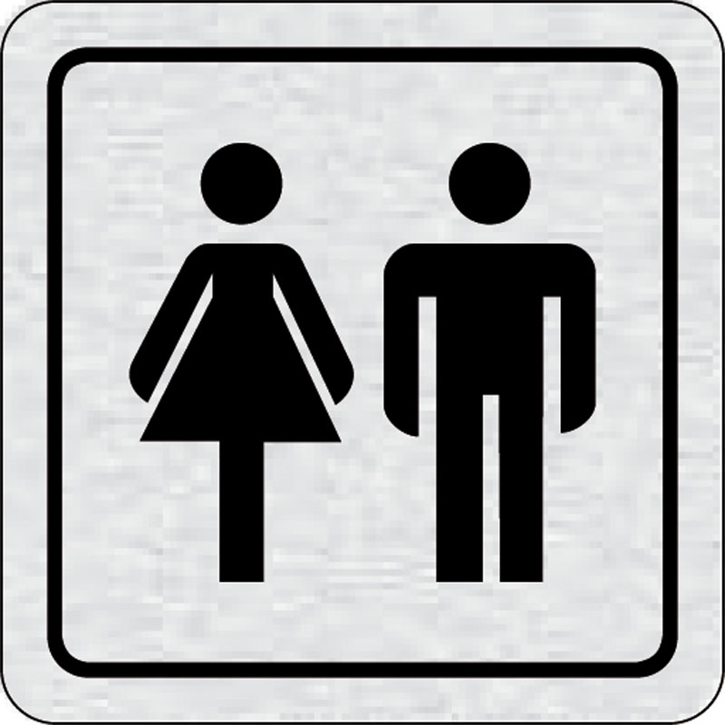 piktogram WC ženy, WC muži, rozmer 80x80 mm - piktogram je vyrobený technológiou tepelne chemickej tlače na hliníkovú tabuľku- vďaka špeciálnemu chemickému zloženiu je výsledná tlač odolná proti poškrabaniu- piktogram s rozmerom 80x80 mm je zozadu vybaven