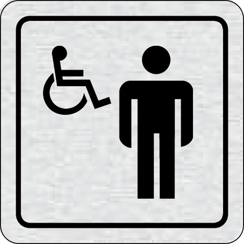 piktogram WC muži invalidi, rozmer 80x80 mm - piktogram je vyrobený technológiou tepelne chemickej tlače na hliníkovú tabuľku- vďaka špeciálnemu chemickému zloženiu je výsledná tlač odolná proti poškrabaniu- piktogram s rozmerom 80x80 mm je zozadu vybaven