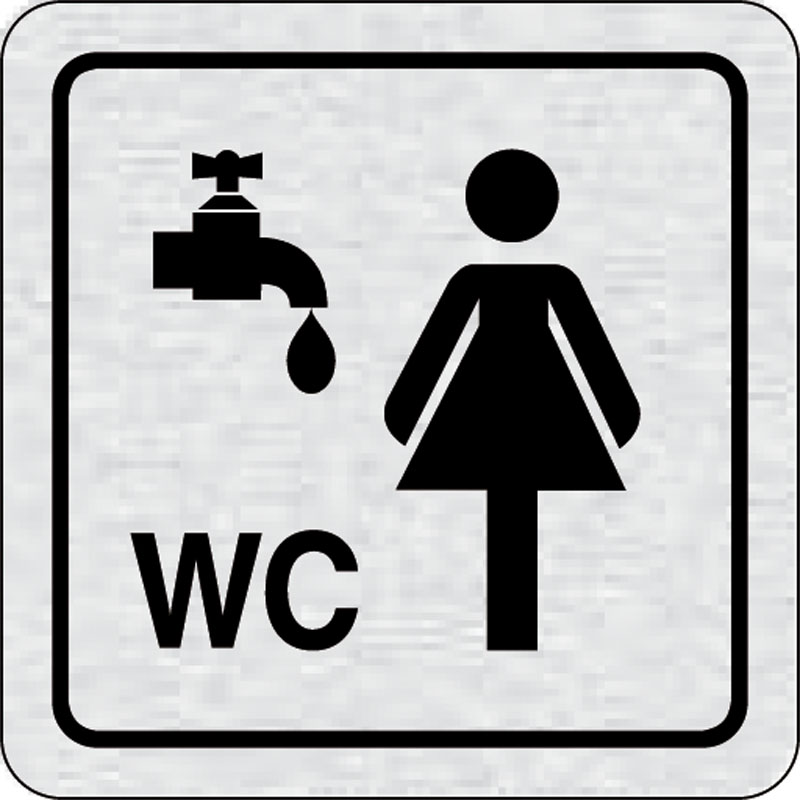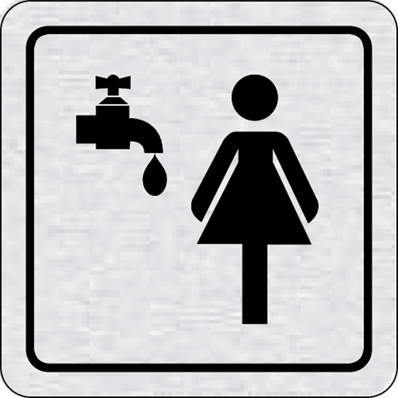 piktogram umyváreň, WC ženy, rozmer 80x80 mm - piktogram je vyrobený technológiou tepelne chemickej tlače na hliníkovú tabuľku- vďaka špeciálnemu chemickému zloženiu je výsledná tlač odolná proti poškrabaniu- piktogram s rozmerom 80x80 mm je zozadu vybave