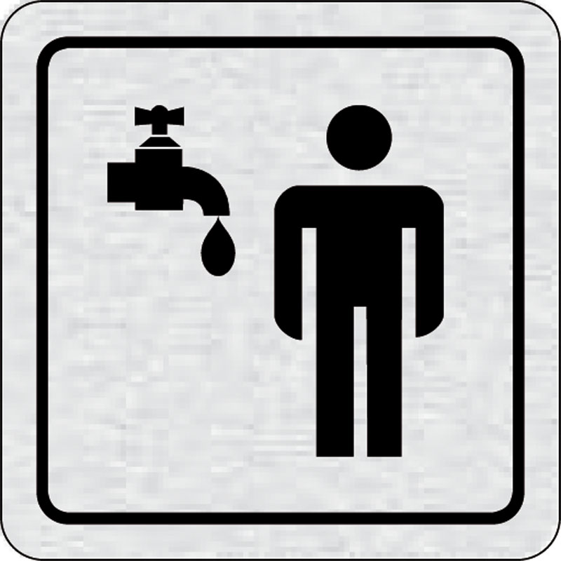 piktogram umyváreň muži, rozmer 80x80 mm - piktogram je vyrobený technológiou tepelne chemickej tlače na hliníkovú tabuľku- vďaka špeciálnemu chemickému zloženiu je výsledná tlač odolná proti poškrabaniu- piktogram s rozmerom 80x80 mm je zozadu vybavený s