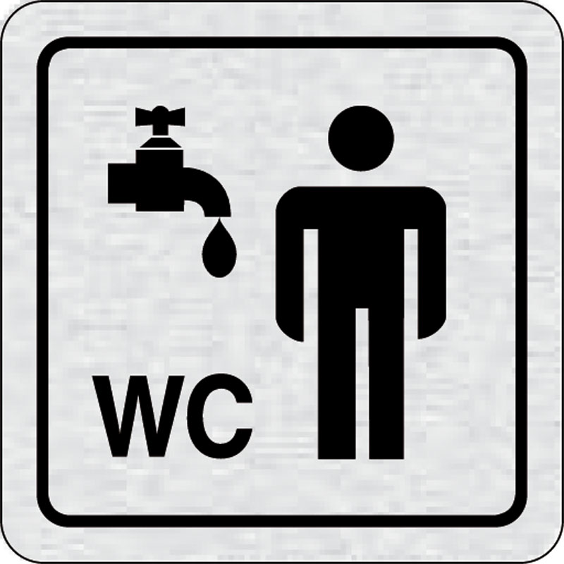 piktogram umyváreň, WC muži, rozmer 80x80 mm - piktogram je vyrobený technológiou tepelne chemickej tlače na hliníkovú tabuľku- vďaka špeciálnemu chemickému zloženiu je výsledná tlač odolná proti poškrabaniu- piktogram s rozmerom 80x80 mm je zozadu vybave