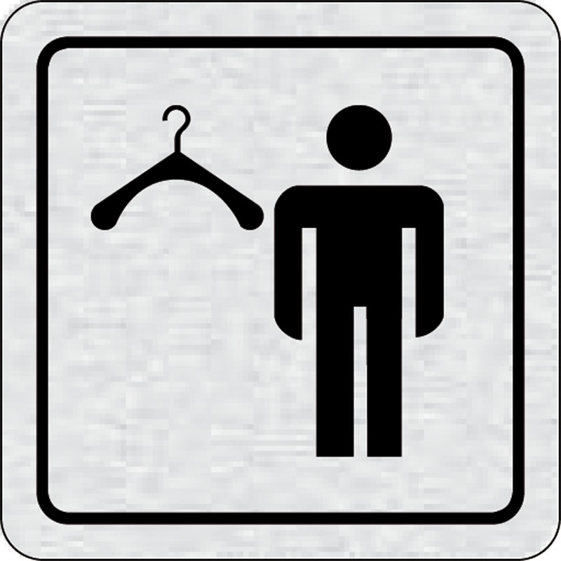 piktogram šatňa muži, rozmer 80x80 mm - piktogram je vyrobený technológiou tepelne chemickej tlače na hliníkovú tabuľku- vďaka špeciálnemu chemickému zloženiu je výsledná tlač odolná proti poškrabaniu- piktogram s rozmerom 80x80 mm je zozadu vybavený samo