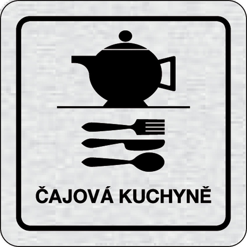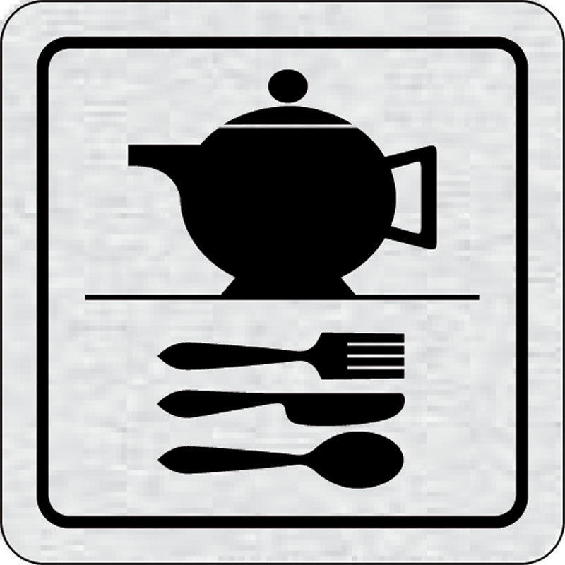 piktogram čajová kuchyne, rozmer 80x80 mm - piktogram je vyrobený technológiou tepelne chemickej tlače na hliníkovú tabuľku- vďaka špeciálnemu chemickému zloženiu je výsledná tlač odolná proti poškrabaniu- piktogram s rozmerom 80x80 mm je zozadu vybavený