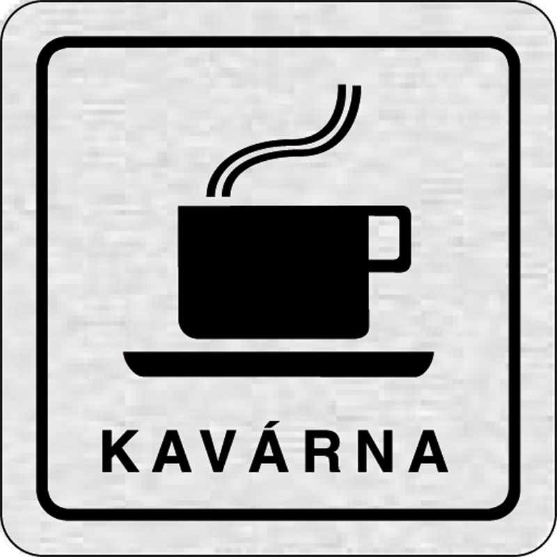 piktogram kaviareň, rozmer 80x80 mm - piktogram je vyrobený technológiou tepelne chemickej tlače na hliníkovú tabuľku- vďaka špeciálnemu chemickému zloženiu je výsledná tlač odolná proti poškrabaniu- piktogram s rozmerom 80x80 mm je zozadu vybavený samole