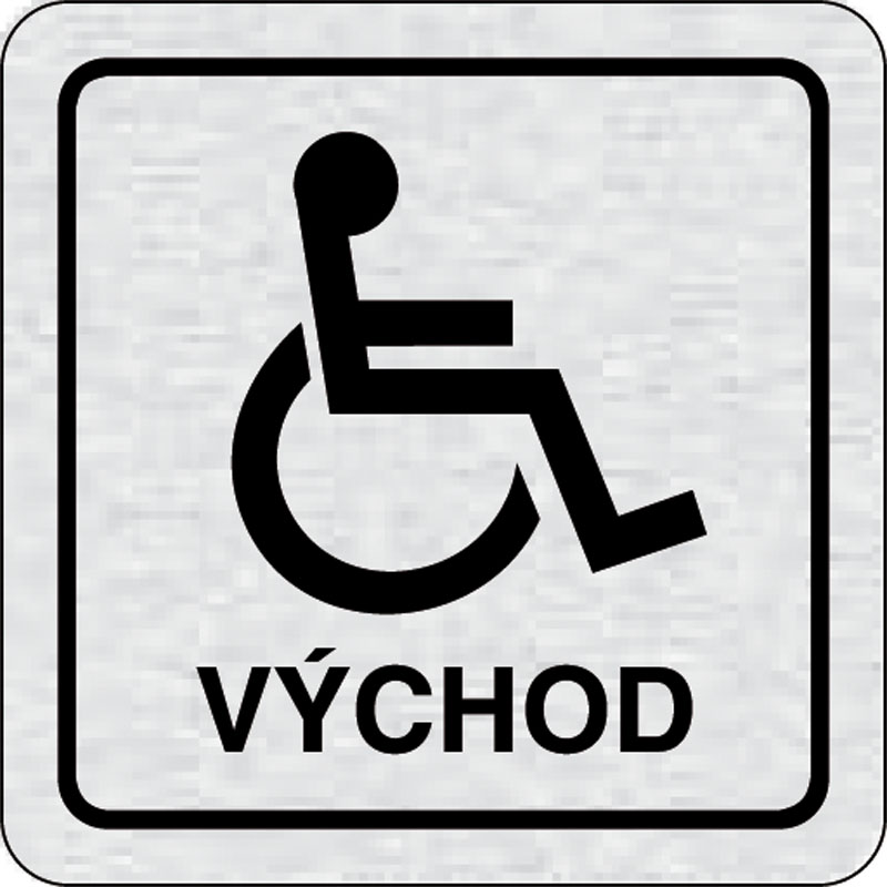 piktogram východ pre invalidov, rozmer 80x80 mm - piktogram je vyrobený technológiou tepelne chemickej tlače na hliníkovú tabuľku- vďaka špeciálnemu chemickému zloženiu je výsledná tlač odolná proti poškrabaniu- piktogram s rozmerom 80x80 mm je zozadu vyb