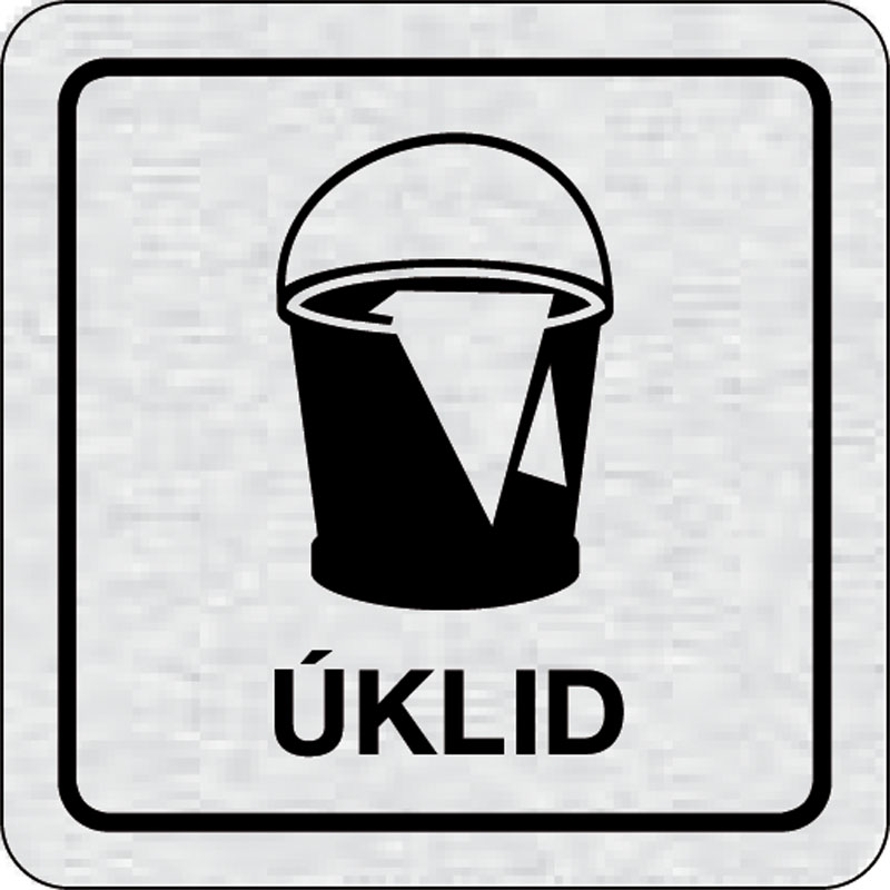 piktogram upratovanie, rozmer 80x80 mm - piktogram je vyrobený technológiou tepelne chemickej tlače na hliníkovú tabuľku- vďaka špeciálnemu chemickému zloženiu je výsledná tlač odolná proti poškrabaniu- piktogram s rozmerom 80x80 mm je zozadu vybavený sam