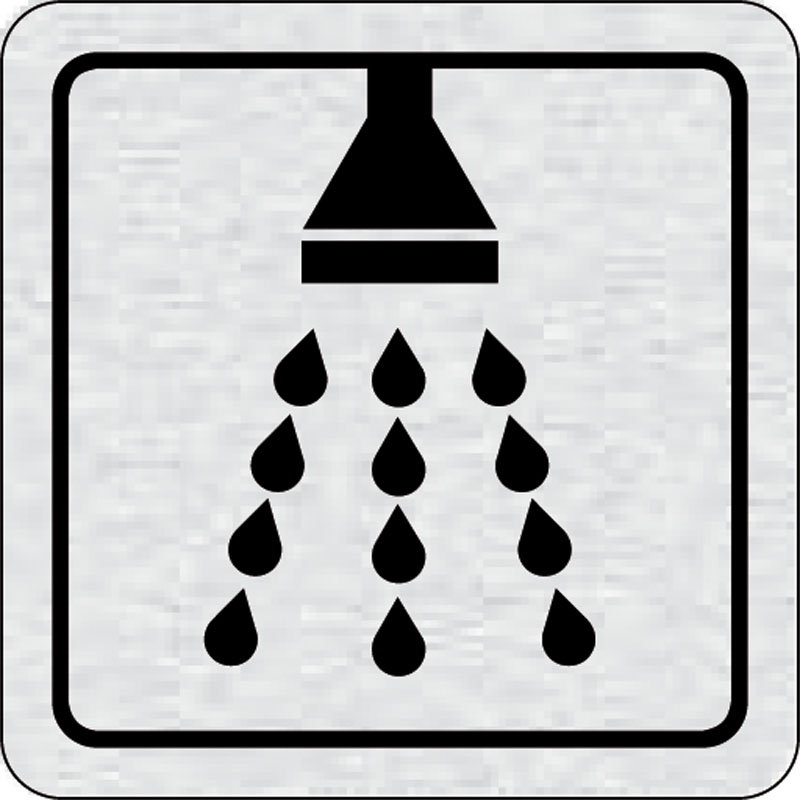 piktogram sprchy, rozmer 80x80 mm - piktogram je vyrobený technológiou tepelne chemickej tlače na hliníkovú tabuľku- vďaka špeciálnemu chemickému zloženiu je výsledná tlač odolná proti poškrabaniu- piktogram s rozmerom 80x80 mm je zozadu vybavený samolepi