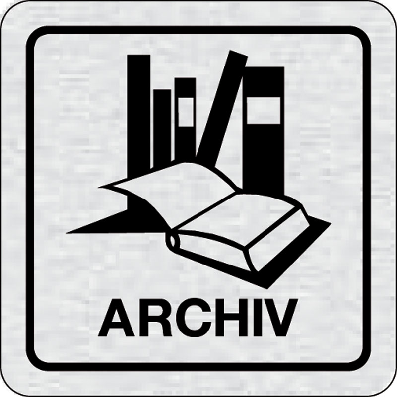 piktogram archív, rozmer 80x80 mm - piktogram je vyrobený technológiou tepelne chemickej tlače na hliníkovú tabuľku- vďaka špeciálnemu chemickému zloženiu je výsledná tlač odolná proti poškrabaniu- piktogram s rozmerom 80x80 mm je zozadu vybavený samolepi