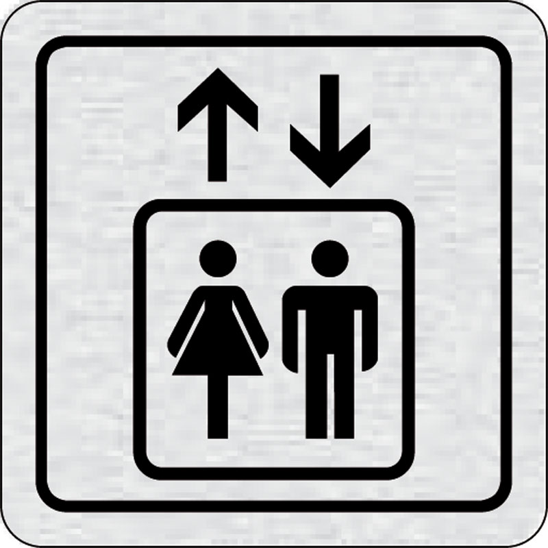 piktogram výťah, rozmer 80x80 mm - piktogram je vyrobený technológiou tepelne chemickej tlače na hliníkovú tabuľku- vďaka špeciálnemu chemickému zloženiu je výsledná tlač odolná proti poškrabaniu- piktogram s rozmerom 80x80 mm je zozadu vybavený samolepia