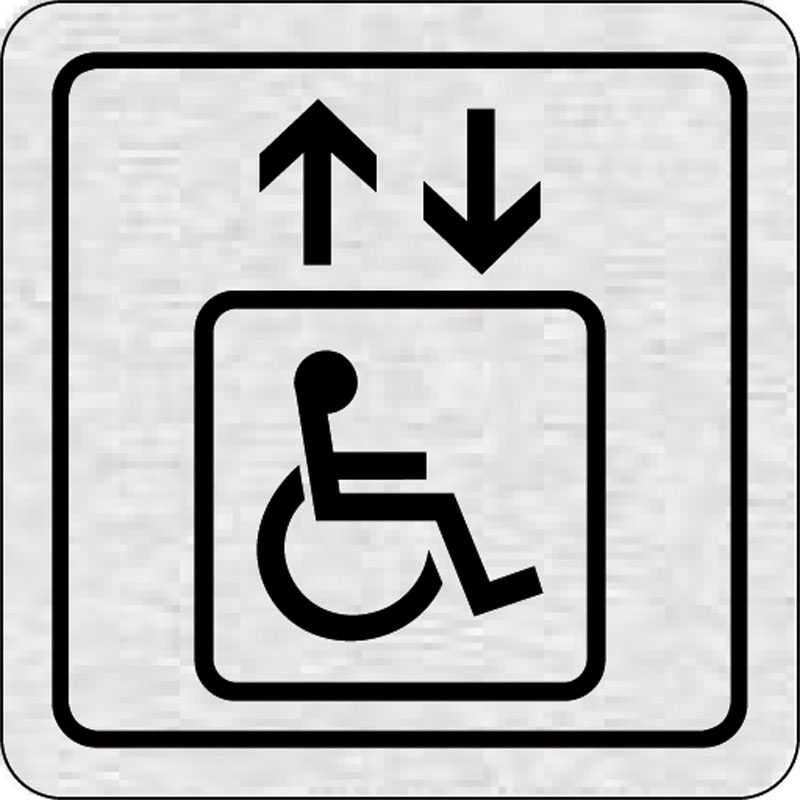 piktogram výťah invalidi, rozmer 80x80 mm - piktogram je vyrobený technológiou tepelne chemickej tlače na hliníkovú tabuľku- vďaka špeciálnemu chemickému zloženiu je výsledná tlač odolná proti poškrabaniu- piktogram s rozmerom 80x80 mm je zozadu vybavený