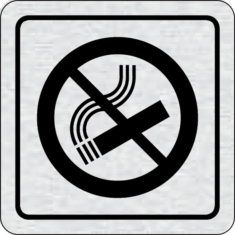 piktogram zákaz fajčenia, rozmer 80x80 mm - piktogram je vyrobený technológiou tepelne chemickej tlače na hliníkovú tabuľku- vďaka špeciálnemu chemickému zloženiu je výsledná tlač odolná proti poškrabaniu- piktogram s rozmerom 80x80 mm je zozadu vybavený