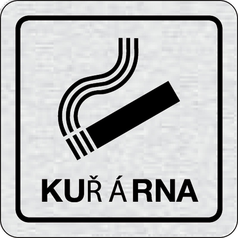 piktogram fajčiareň, rozmer 80x80 mm - piktogram je vyrobený technológiou tepelne chemickej tlače na hliníkovú tabuľku- vďaka špeciálnemu chemickému zloženiu je výsledná tlač odolná proti poškrabaniu- piktogram s rozmerom 80x80 mm je zozadu vybavený samol