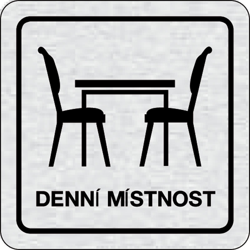 piktogram denná miestnosť, rozmer 80x80 mm - piktogram je vyrobený technológiou tepelne chemickej tlače na hliníkovú tabuľku- vďaka špeciálnemu chemickému zloženiu je výsledná tlač odolná proti poškrabaniu- piktogram s rozmerom 80x80 mm je zozadu vybavený