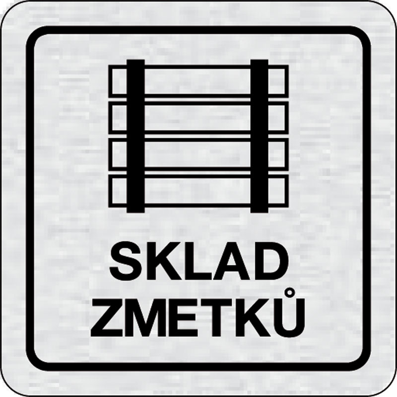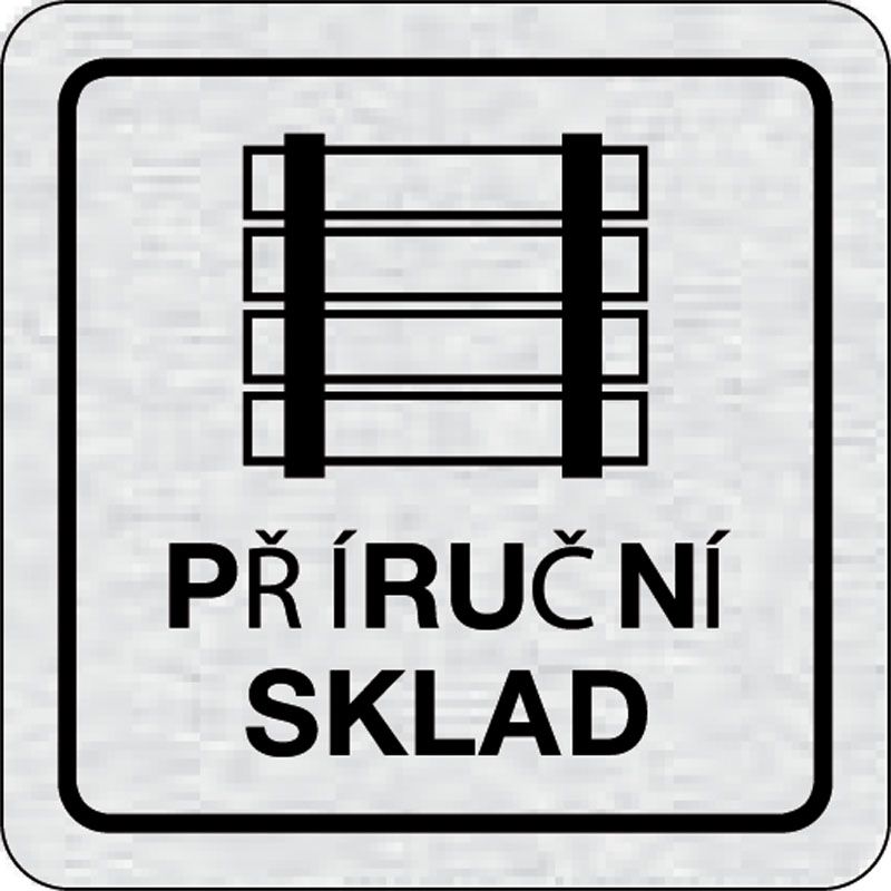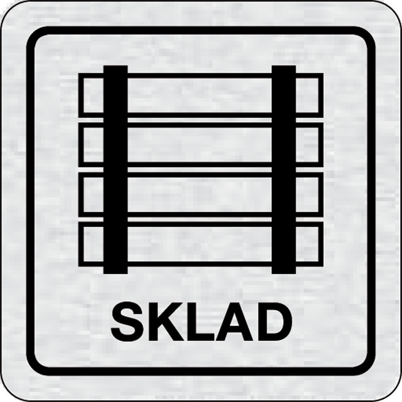 piktogram sklad, rozmer 80x80 mm - piktogram je vyrobený technológiou tepelne chemickej tlače na hliníkovú tabuľku- vďaka špeciálnemu chemickému zloženiu je výsledná tlač odolná proti poškrabaniu- piktogram s rozmerom 80x80 mm je zozadu vybavený samolepia