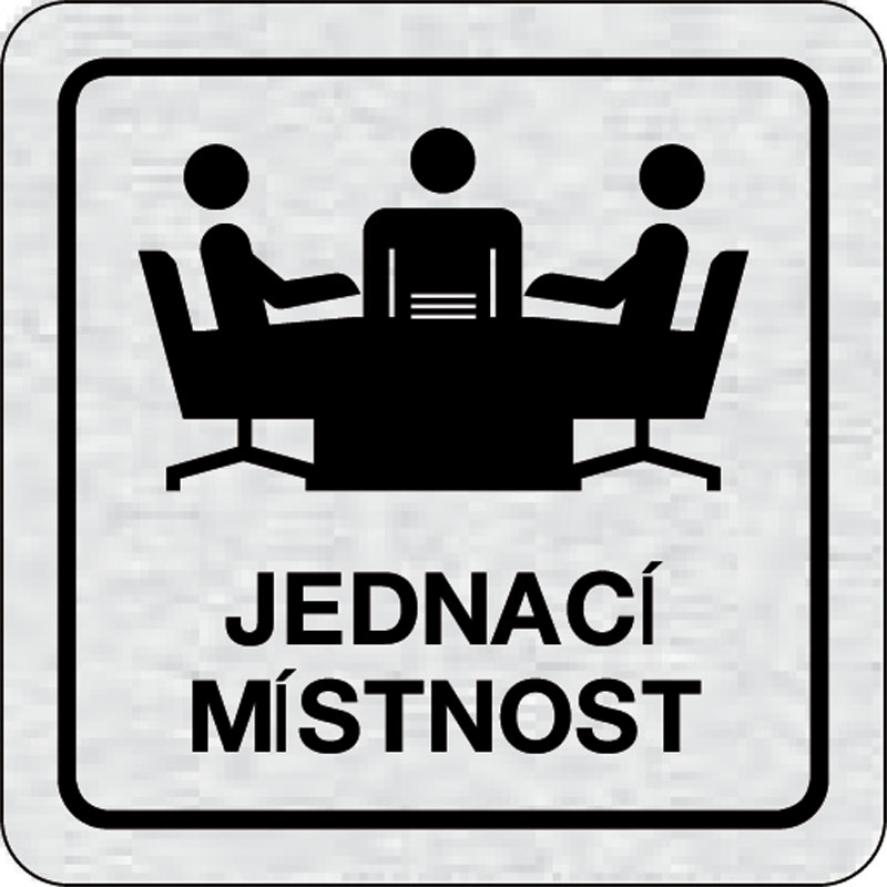 piktogram rokovacia miestnosť, rozmer 80x80 mm - piktogram je vyrobený technológiou tepelne chemickej tlače na hliníkovú tabuľku- vďaka špeciálnemu chemickému zloženiu je výsledná tlač odolná proti poškrabaniu- piktogram s rozmerom 80x80 mm je zozadu vyba