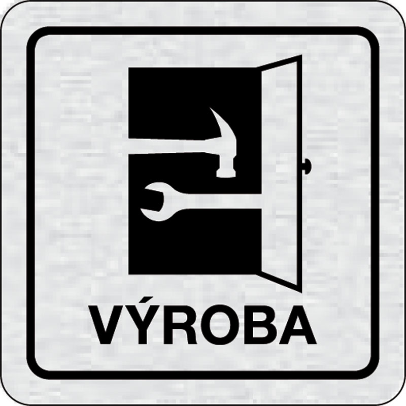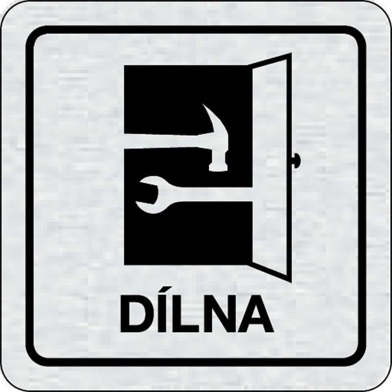 piktogram dielňa, rozmer 80x80 mm - piktogram je vyrobený technológiou tepelne chemickej tlače na hliníkovú tabuľku- vďaka špeciálnemu chemickému zloženiu je výsledná tlač odolná proti poškrabaniu- piktogram s rozmerom 80x80 mm je zozadu vybavený samolepi