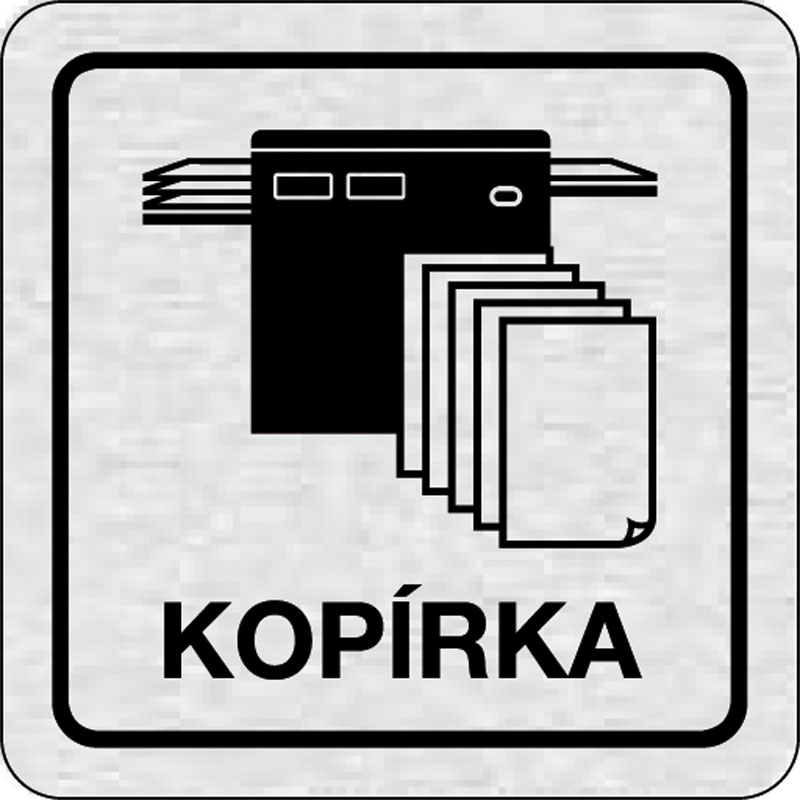 piktogram kopírka, rozmer 80x80 mm - piktogram je vyrobený technológiou tepelne chemickej tlače na hliníkovú tabuľku- vďaka špeciálnemu chemickému zloženiu je výsledná tlač odolná proti poškrabaniu- piktogram s rozmerom 80x80 mm je zozadu vybavený samolep