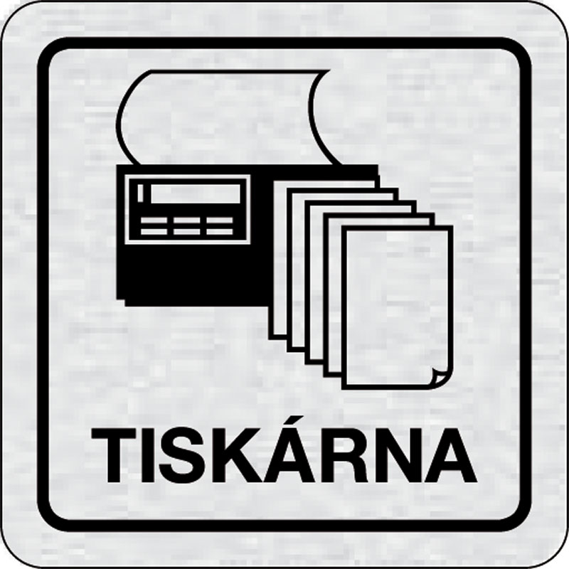 piktogram tlačiareň, rozmer 80x80 mm - piktogram je vyrobený technológiou tepelne chemickej tlače na hliníkovú tabuľku- vďaka špeciálnemu chemickému zloženiu je výsledná tlač odolná proti poškrabaniu- piktogram s rozmerom 80x80 mm je zozadu vybavený samol