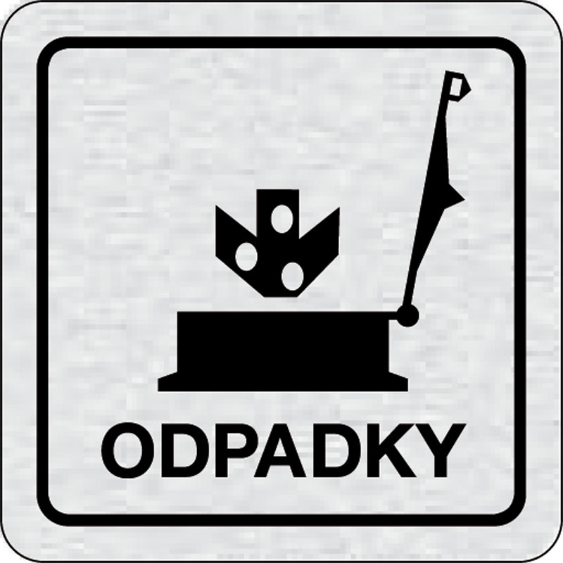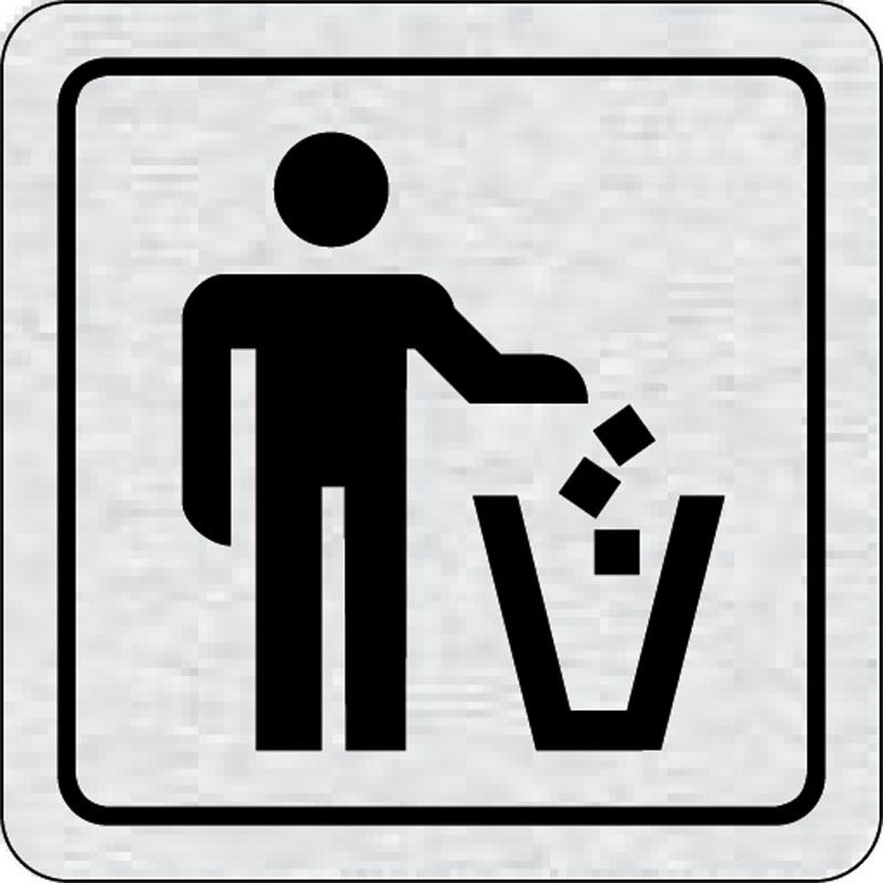 piktogram odpadky, rozmer 80x80 mm - piktogram je vyrobený technológiou tepelne chemickej tlače na hliníkovú tabuľku- vďaka špeciálnemu chemickému zloženiu je výsledná tlač odolná proti poškrabaniu- piktogram s rozmerom 80x80 mm je zozadu vybavený samolep