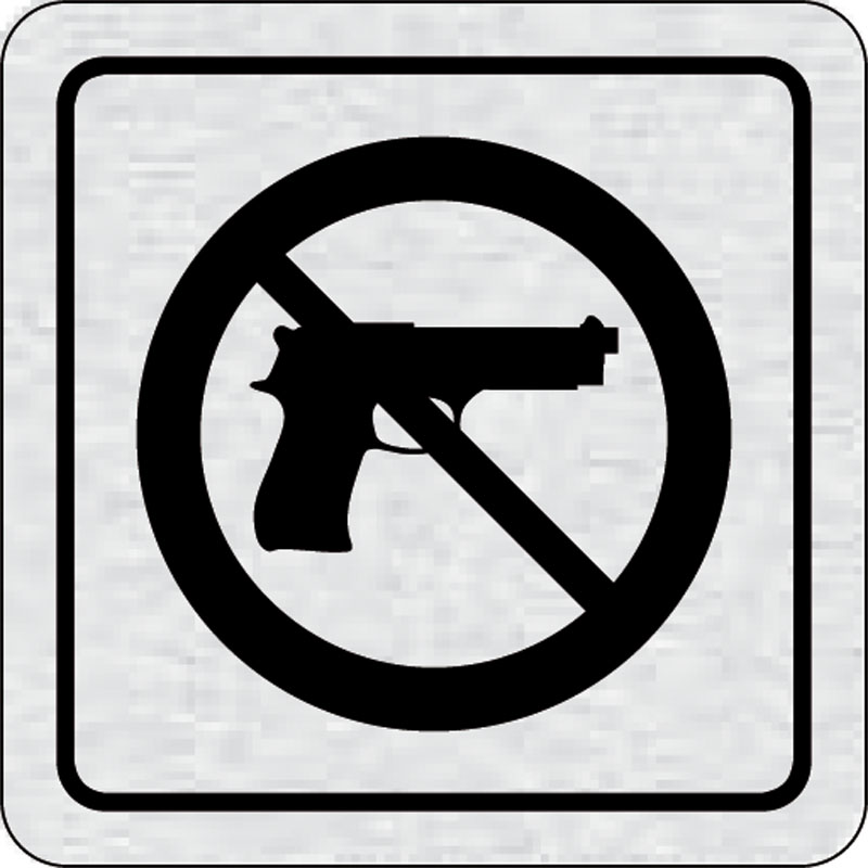 piktogram zákaz vstupu so zbraňou, rozmer 80x80 mm - piktogram je vyrobený technológiou tepelne chemickej tlače na hliníkovú tabuľku- vďaka špeciálnemu chemickému zloženiu je výsledná tlač odolná proti poškrabaniu- piktogram s rozmerom 80x80 mm je zozadu