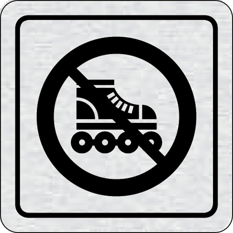 piktogram zákaz jazdy na kolieskových korčúľ, rozmer 80x80 mm - piktogram je vyrobený technológiou tepelne chemickej tlače na hliníkovú tabuľku- vďaka špeciálnemu chemickému zloženiu je výsledná tlač odolná proti poškrabaniu- piktogram s rozmerom 80x80 mm