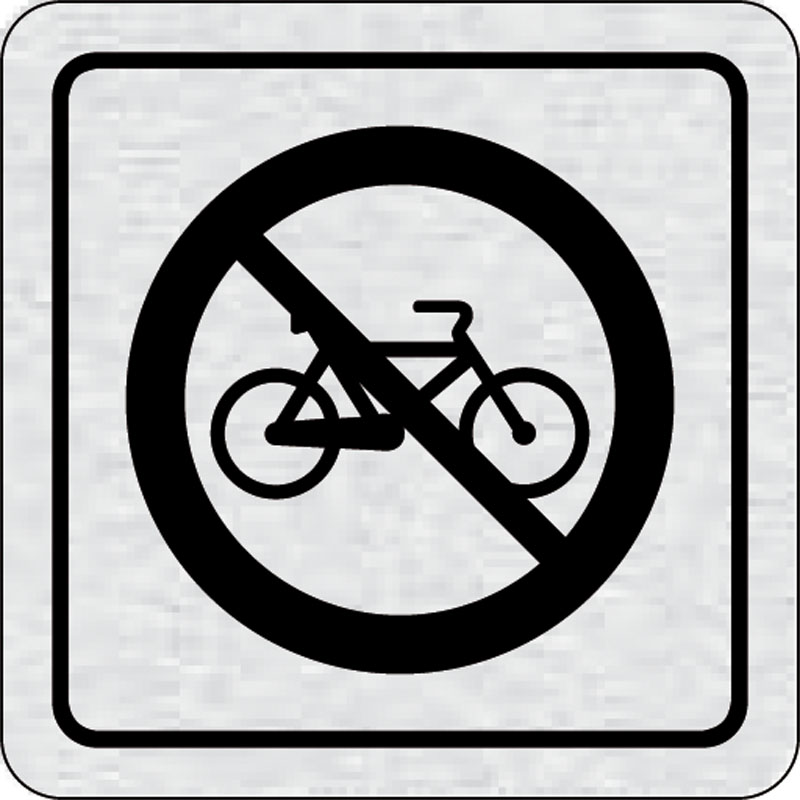 piktogram zákaz jazdy na bicykli, rozmer 80x80 mm - piktogram je vyrobený technológiou tepelne chemickej tlače na hliníkovú tabuľku- vďaka špeciálnemu chemickému zloženiu je výsledná tlač odolná proti poškrabaniu- piktogram s rozmerom 80x80 mm je zozadu v