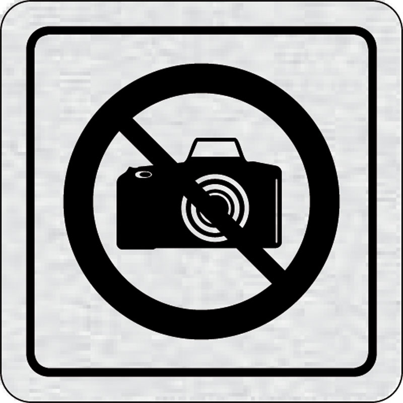 piktogram zákaz fotografovania, rozmer 80x80 mm - piktogram je vyrobený technológiou tepelne chemickej tlače na hliníkovú tabuľku- vďaka špeciálnemu chemickému zloženiu je výsledná tlač odolná proti poškrabaniu- piktogram s rozmerom 80x80 mm je zozadu vyb