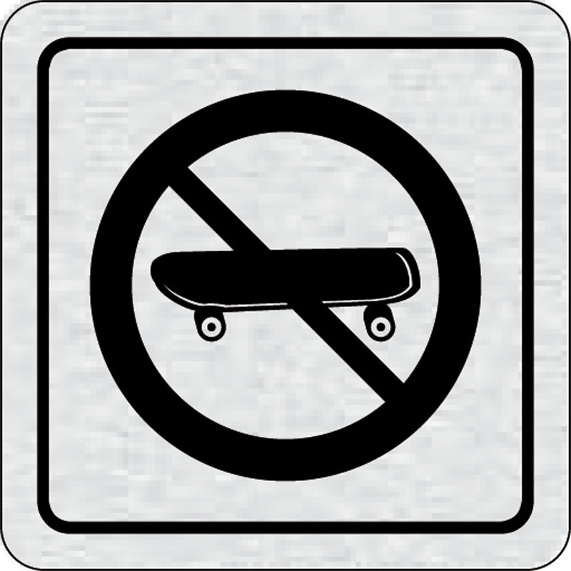 piktogram zákaz jazdy na skateboarde, rozmer 80x80 mm - piktogram je vyrobený technológiou tepelne chemickej tlače na hliníkovú tabuľku- vďaka špeciálnemu chemickému zloženiu je výsledná tlač odolná proti poškrabaniu- piktogram s rozmerom 80x80 mm je zoza