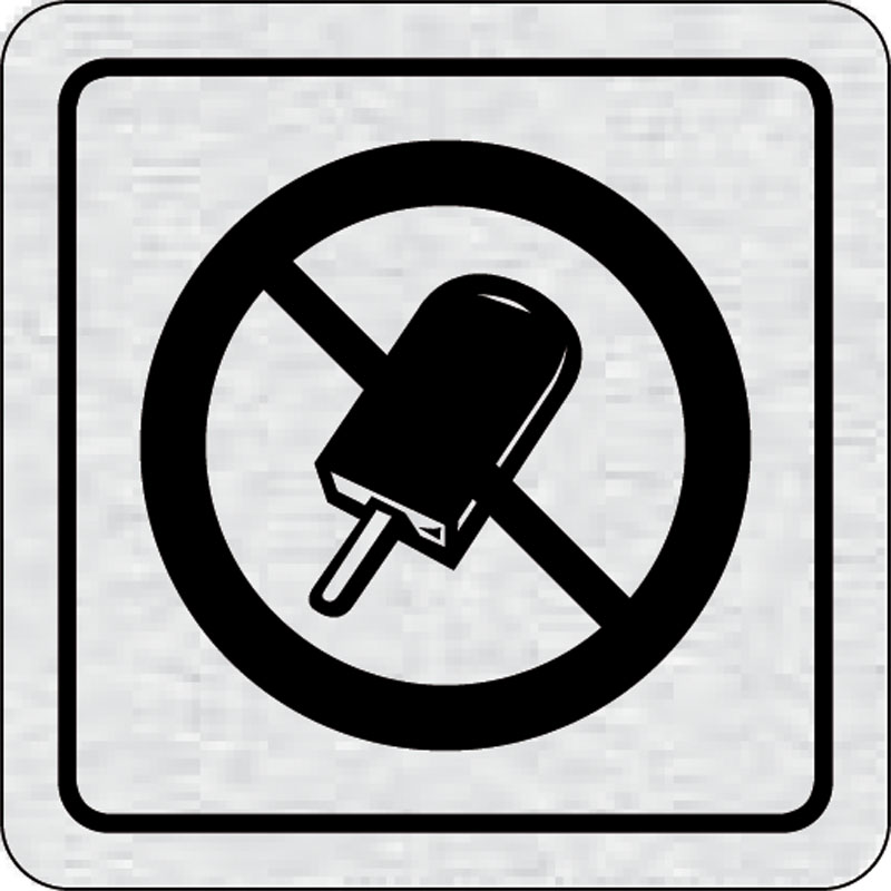 piktogram zákaz vstupu so zmrzlinou, rozmer 80x80 mm - piktogram je vyrobený technológiou tepelne chemickej tlače na hliníkovú tabuľku- vďaka špeciálnemu chemickému zloženiu je výsledná tlač odolná proti poškrabaniu- piktogram s rozmerom 80x80 mm je zozad
