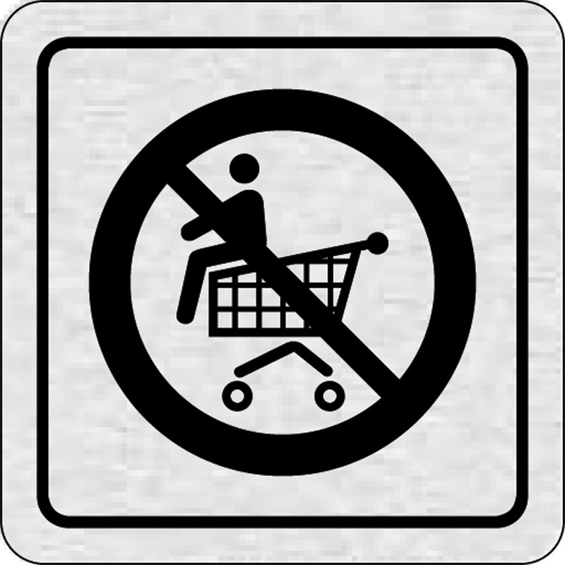 piktogram zákaz jazdy na nákupnom vozíku, rozmer 80x80 mm - piktogram je vyrobený technológiou tepelne chemickej tlače na hliníkovú tabuľku- vďaka špeciálnemu chemickému zloženiu je výsledná tlač odolná proti poškrabaniu- piktogram s rozmerom 80x80 mm je