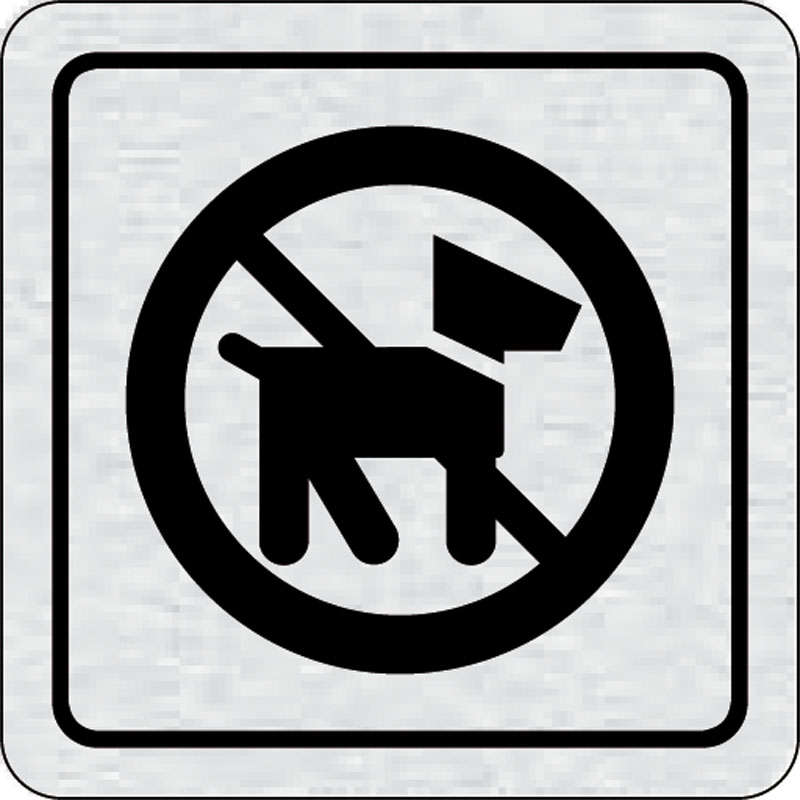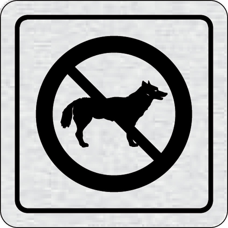 piktogram zákaz vstupu so psom, rozmer 80x80 mm - piktogram je vyrobený technológiou tepelne chemickej tlače na hliníkovú tabuľku- vďaka špeciálnemu chemickému zloženiu je výsledná tlač odolná proti poškrabaniu- piktogram s rozmerom 80x80 mm je zozadu vyb