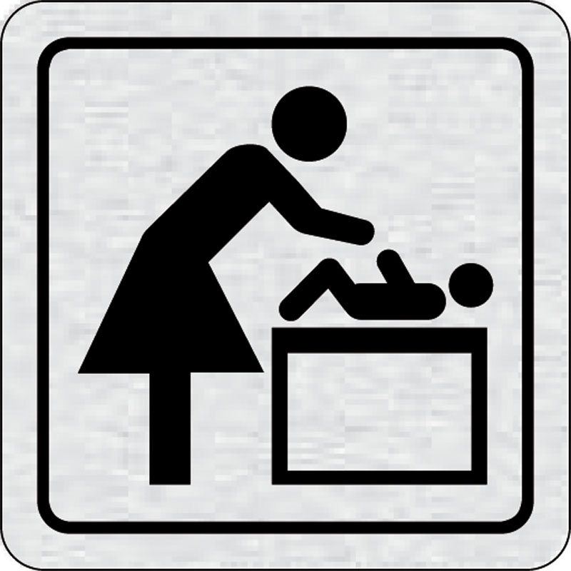 piktogram prebaľovací pult, rozmer 80x80 mm - piktogram je vyrobený technológiou tepelne chemickej tlače na hliníkovú tabuľku- vďaka špeciálnemu chemickému zloženiu je výsledná tlač odolná proti poškrabaniu- piktogram s rozmerom 80x80 mm je zozadu vybaven
