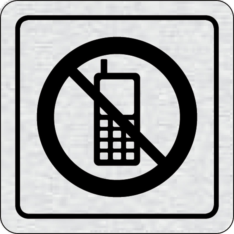 piktogram zákaz telefonovania, rozmer 80x80 mm - piktogram je vyrobený technológiou tepelne chemickej tlače na hliníkovú tabuľku- vďaka špeciálnemu chemickému zloženiu je výsledná tlač odolná proti poškrabaniu- piktogram s rozmerom 80x80 mm je zozadu vyba