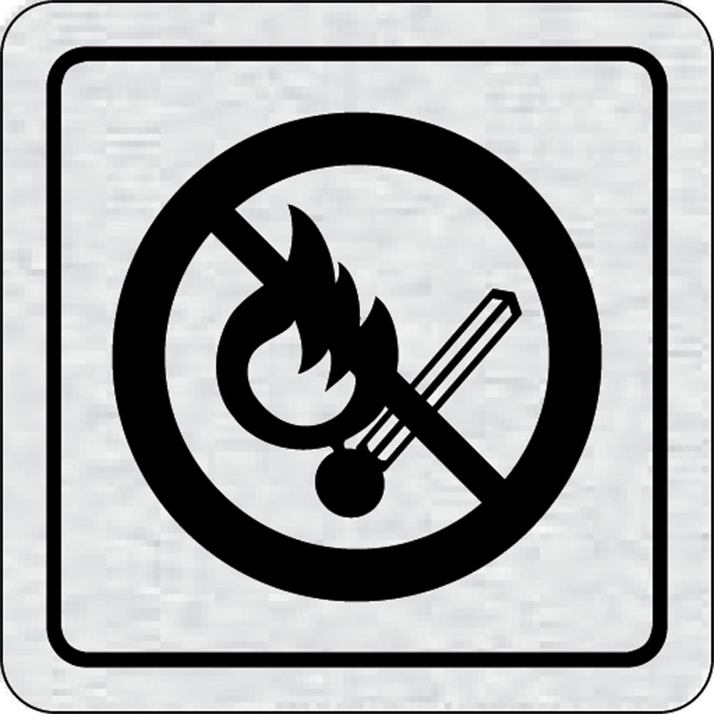 piktogram zákaz vstupu s otvoreným plameňom, rozmer 80x80 mm - piktogram je vyrobený technológiou tepelne chemickej tlače na hliníkovú tabuľku- vďaka špeciálnemu chemickému zloženiu je výsledná tlač odolná proti poškrabaniu- piktogram s rozmerom 80x80 mm