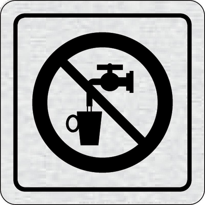 piktogram zákaz pitia vody, rozmer 80x80 mm - piktogram je vyrobený technológiou tepelne chemickej tlače na hliníkovú tabuľku- vďaka špeciálnemu chemickému zloženiu je výsledná tlač odolná proti poškrabaniu- piktogram s rozmerom 80x80 mm je zozadu vybaven