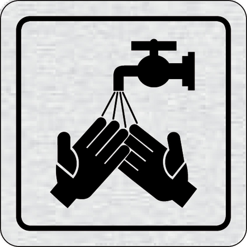 piktogram umyte si ruky, rozmer 80x80 mm - piktogram je vyrobený technológiou tepelne chemickej tlače na hliníkovú tabuľku- vďaka špeciálnemu chemickému zloženiu je výsledná tlač odolná proti poškrabaniu- piktogram s rozmerom 80x80 mm je zozadu vybavený s