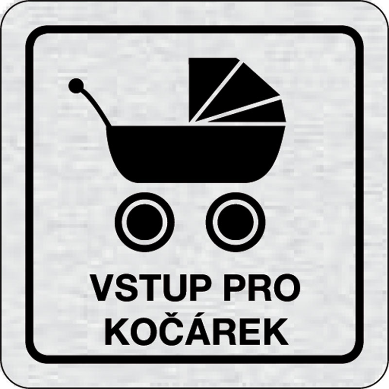 piktogram vstup pre kočík, rozmer 80x80 mm - piktogram je vyrobený technológiou tepelne chemickej tlače na hliníkovú tabuľku- vďaka špeciálnemu chemickému zloženiu je výsledná tlač odolná proti poškrabaniu- piktogram s rozmerom 80x80 mm je zozadu vybavený