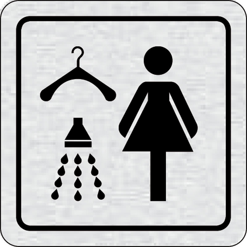 piktogram šatňa so sprchou ženy, rozmer 80x80 mm - piktogram je vyrobený technológiou tepelne chemickej tlače na hliníkovú tabuľku- vďaka špeciálnemu chemickému zloženiu je výsledná tlač odolná proti poškrabaniu- piktogram s rozmerom 80x80 mm je zozadu vy