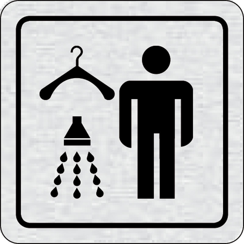 piktogram šatňa so sprchou muži, rozmer 80x80 mm - piktogram je vyrobený technológiou tepelne chemickej tlače na hliníkovú tabuľku- vďaka špeciálnemu chemickému zloženiu je výsledná tlač odolná proti poškrabaniu- piktogram s rozmerom 80x80 mm je zozadu vy