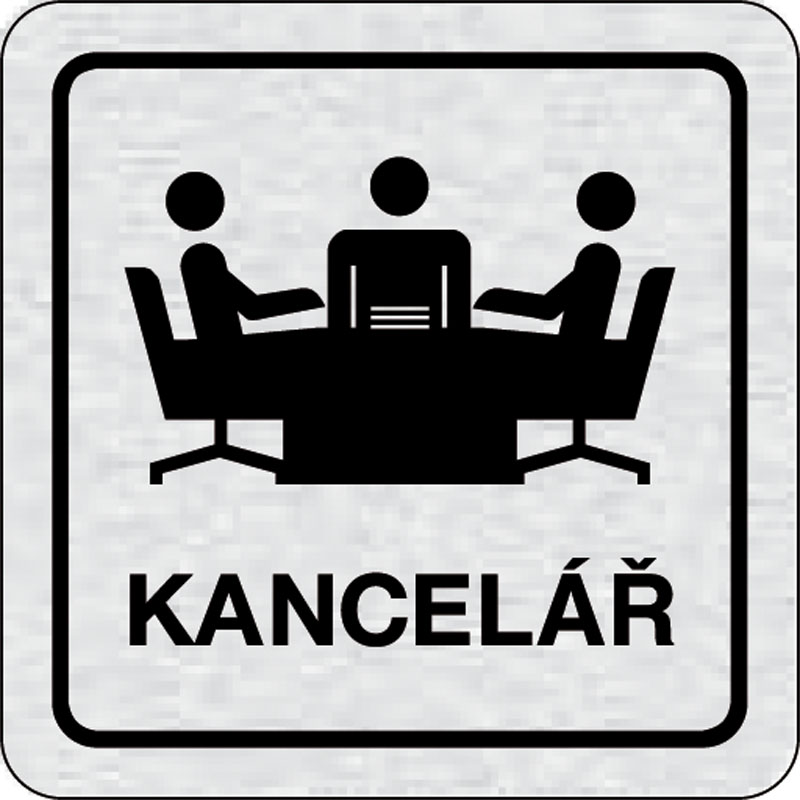 piktogram kancelária, rozmer 160x80 mm - piktogram je vyrobený technológiou tepelne chemickej tlače na hliníkovú tabuľku - vďaka špeciálnemu chemickému zloženiu je výsledná tlač odolná proti poškrabaniu - piktogram s rozmerom 160x80 mm je zozadu vybavený