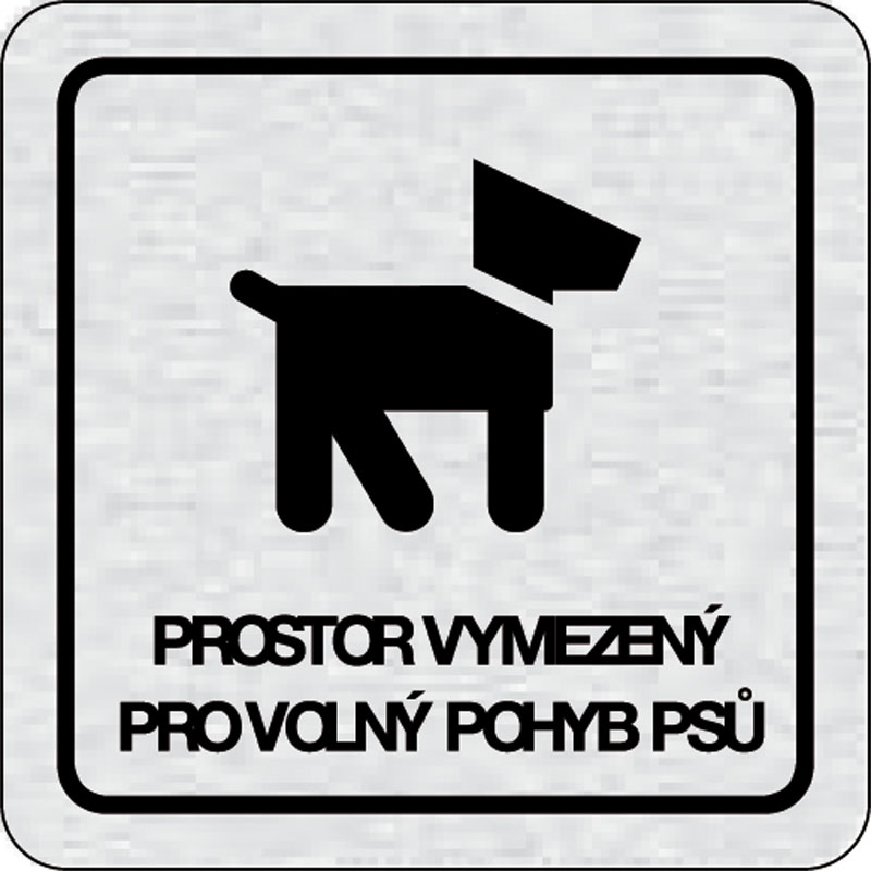 piktogram priestor vymedzený pre voľný pohyb psov, rozmer 80x80 mm - piktogram je vyrobený technológiou tepelne chemickej tlače na hliníkovú tabuľku- vďaka špeciálnemu chemickému zloženiu je výsledná tlač odolná proti poškrabaniu- piktogram s rozmerom 80x