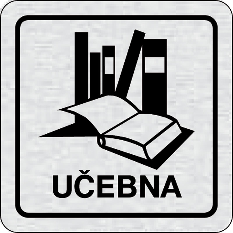 piktogram učebňa, rozmer 80x80 mm - piktogram je vyrobený technológiou tepelne chemickej tlače na hliníkovú tabuľku- vďaka špeciálnemu chemickému zloženiu je výsledná tlač odolná proti poškrabaniu- piktogram s rozmerom 80x80 mm je zozadu vybavený samolepi