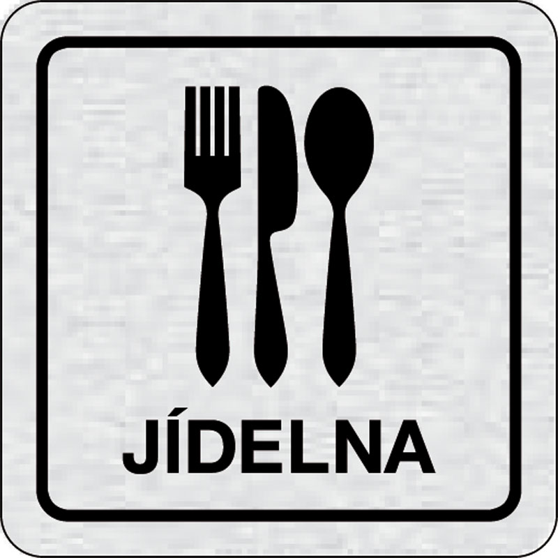 piktogram jedáleň, rozmer 80x80 mm - piktogram je vyrobený technológiou tepelne chemickej tlače na hliníkovú tabuľku- vďaka špeciálnemu chemickému zloženiu je výsledná tlač odolná proti poškrabaniu- piktogram s rozmerom 80x80 mm je zozadu vybavený samolep