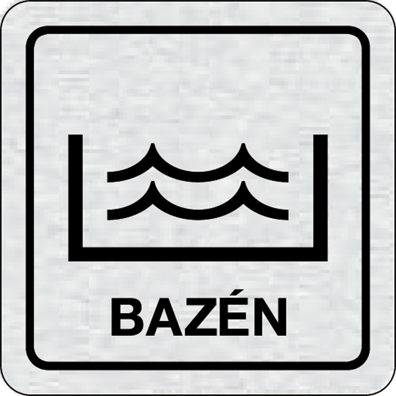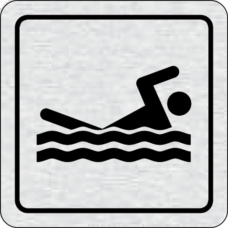 piktogram bazén, rozmer 80x80 mm - piktogram je vyrobený technológiou tepelne chemickej tlače na hliníkovú tabuľku- vďaka špeciálnemu chemickému zloženiu je výsledná tlač odolná proti poškrabaniu- piktogram s rozmerom 80x80 mm je zozadu vybavený samolepia