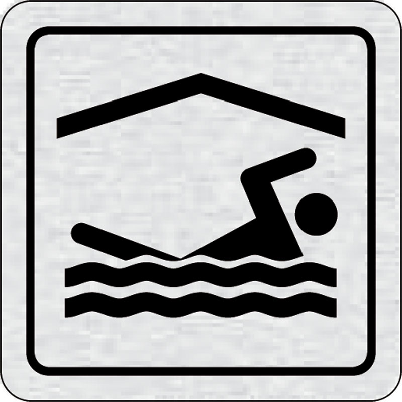piktogram bazén krytý, rozmer 80x80 mm - piktogram je vyrobený technológiou tepelne chemickej tlače na hliníkovú tabuľku- vďaka špeciálnemu chemickému zloženiu je výsledná tlač odolná proti poškrabaniu- piktogram s rozmerom 80x80 mm je zozadu vybavený sam