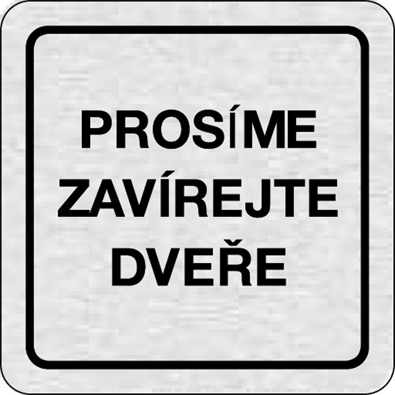 piktogram prosím zatvárajte dvere, rozmer 80x80 mm - piktogram je vyrobený technológiou tepelne chemickej tlače na hliníkovú tabuľku- vďaka špeciálnemu chemickému zloženiu je výsledná tlač odolná proti poškrabaniu- piktogram s rozmerom 80x80 mm je zozadu